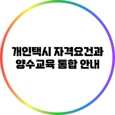 이 글을 통해 개인택시 자격 조건과 양수 교육에 대한 이해를 높이고, 실제로 준비할 때 도움이 되길 바라요. 여러분의 성공적인 택시 운영을 응원합니다!