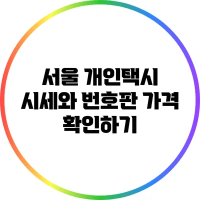 서울은 개인택시의 비중이 높은 도시 중 하나로, 많은 사람들이 택시를 이용하는 만큼 개인택시의 시세와 번호판 가격에 대한 정보는 매우 중요해요. 개인택시 운영을 생각하고 있다면, 이 정보는 필수적이에요.