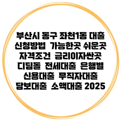 부산시 동구 좌천1동 대출 신청방법 | 가능한곳 쉬운곳 | 자격조건 | 금리이자싼곳 | 디딤돌 | 전세대출 | 은행별 신용대출 | 무직자대출 | 담보대출 | 소액대출 2025